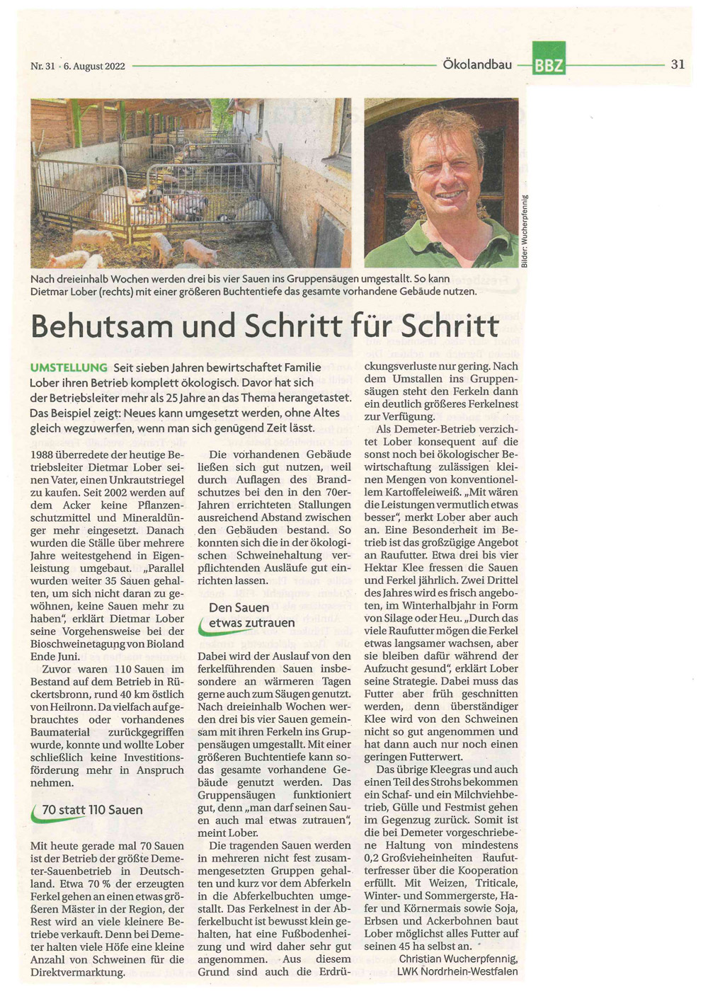 Seit sieben Jahren bewirtschaftet Familie Lober ihren Betrieb komplett ökologisch. Davor hat sich der Betriebsleiter mehr als 25 Jahre an das Thema herangetastet. Das Beispiel zeigt: Neues kann umgesetzt werden, ohne Altes gleich wegzuwerfen, wenn man sich genügend Zeit lässt.