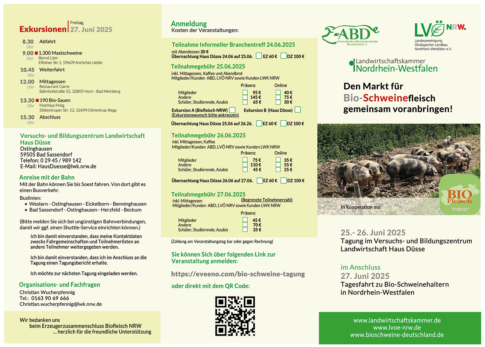 Bio-Schweine-Tagung  findet am 25. und 26. November 2025 im Haus Düsse in Bad Sassendorf statt.